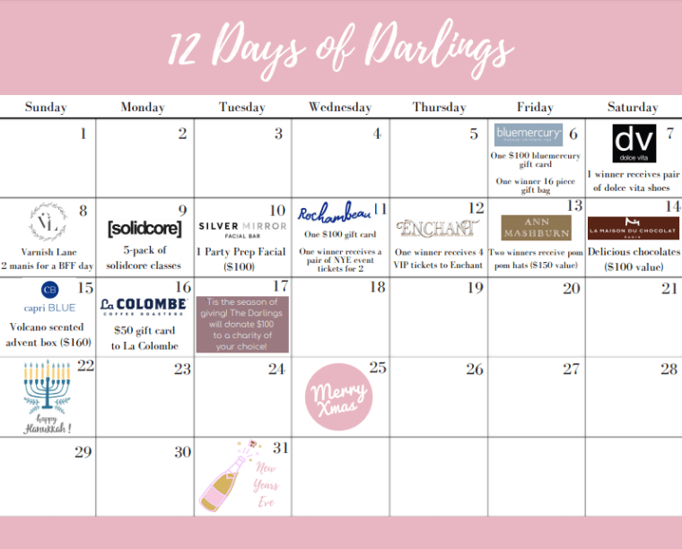Starting Friday, December 6th, there will be a daily giveaway with FABULOUS gifts! We partnered with incredible brands to celebrate Y-O-U! Make sure to check our Instagram feed to enter to win. You can win multiple times as we are using a randomizing website to choose winners. We hope you enjoy the giveaways and thank you so so much for following The DC Darlings! Set your calendar alerts and good luck!!
