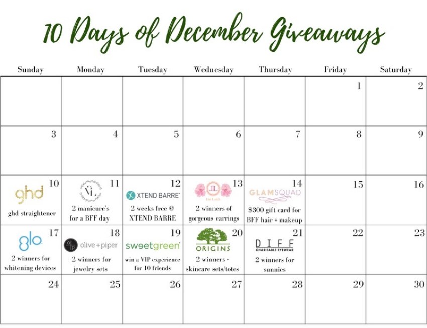 Starting Sunday, December 10th, there will be a daily giveaway with FABULOUS gifts! We partnered with incredible brands to celebrate Y-O-U! Make sure to check our Instagram feed to enter to win. You can win multiple times as we are using a randomizing website to choose winners. We hope you enjoy the giveaways and thank you so so much for following The DC Darlings! Set your calendar alerts and good luck!!